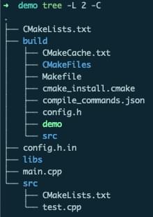 demo 文件就是可执行文件,config.h 就是模板配置生成的头文件。